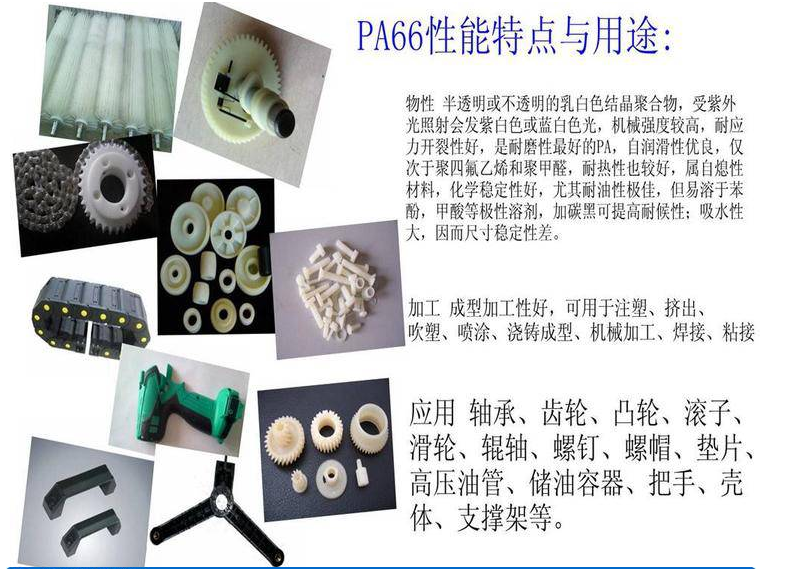 導電尼龍66:具有良好的耐磨性、耐熱性、耐油性及耐化學藥品性,還大大降低了原材料的吸水率和收縮率,